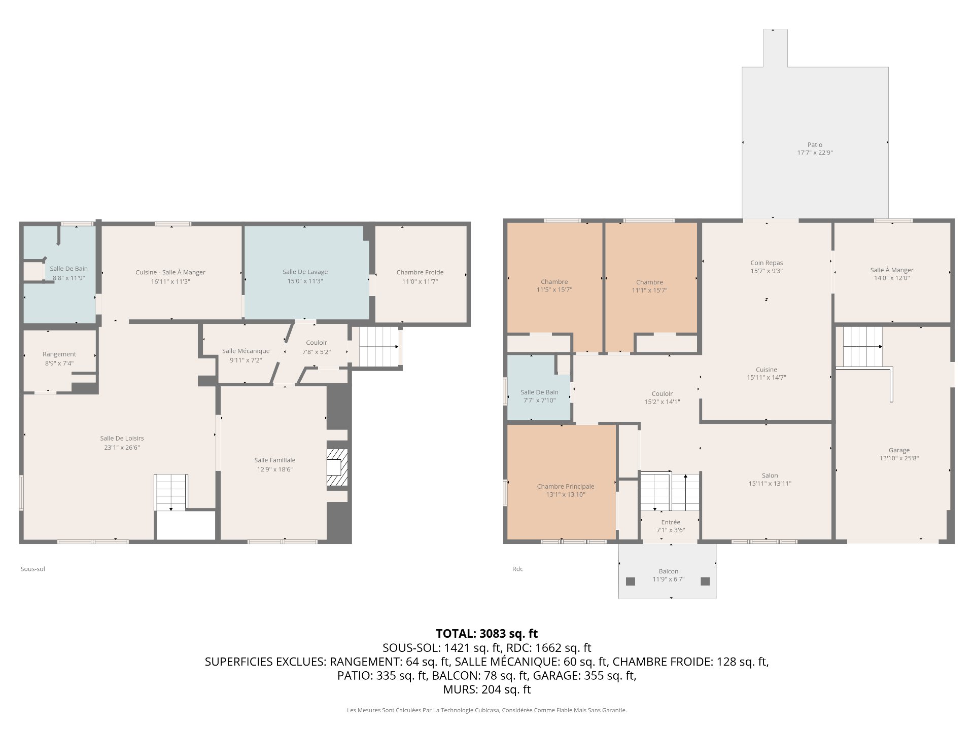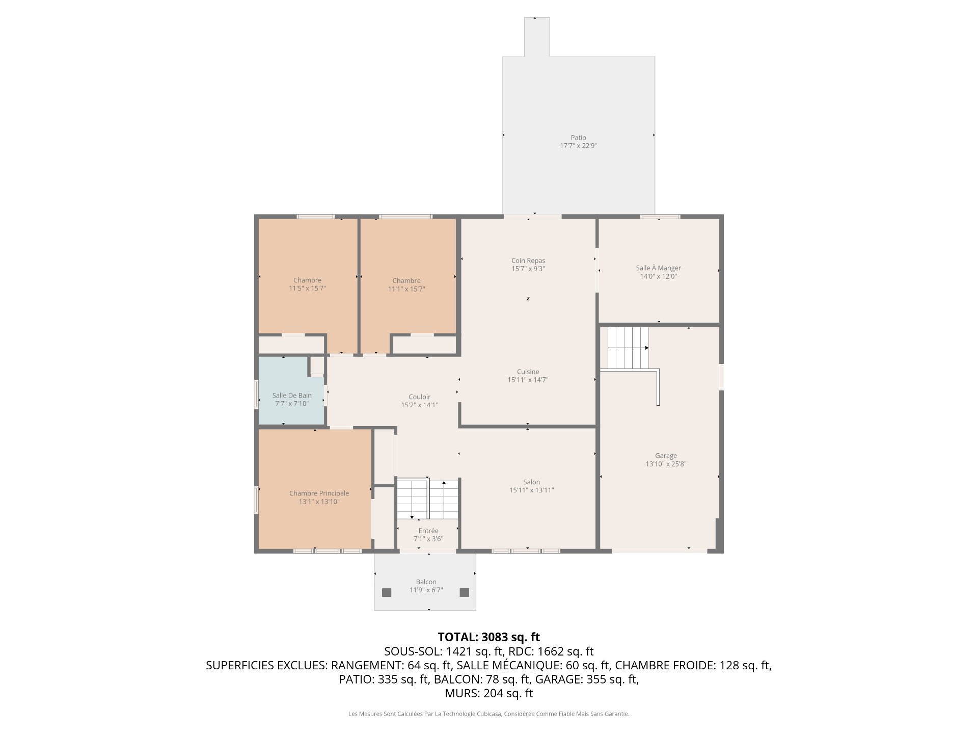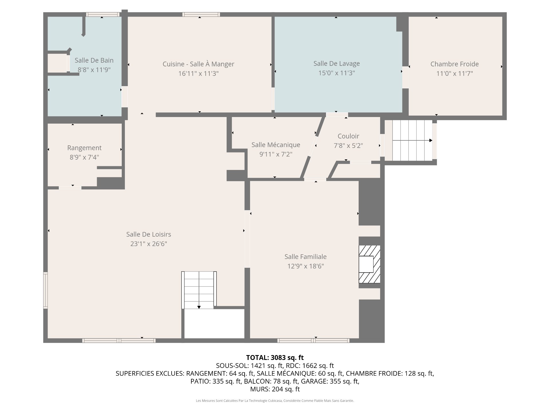 | Laundry room | 15.0 x 11.3 P | Basement | Ceramic tiles |